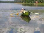 Enjoying a sunny day on a boat on the lake Muuratjärvi.